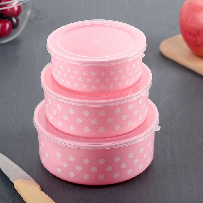 Доляна Набор ланч-боксов пластиковых круглых «Горошек», 10×4/11×4,5/13×5 см, 3 шт, цвет микс