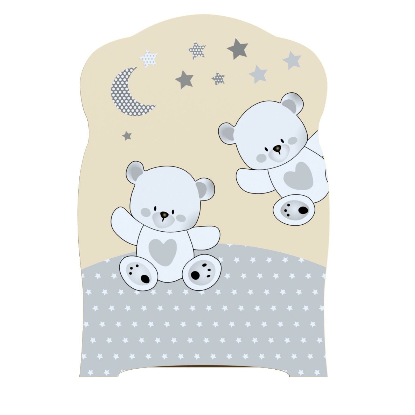 Кровать "Funny bears" (фигурн.спин., колесо-качалка, опуск.планка, накладка ПВХ), ЛДСП