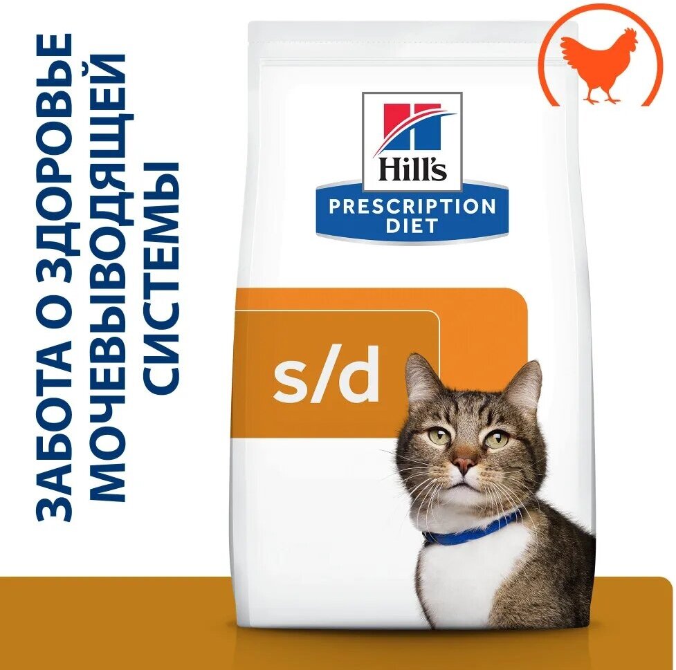 Корм для кошек HILL'S Prescription Diet Feline S/D для растворения струвит.уролитов, курица сух. 1,5кг