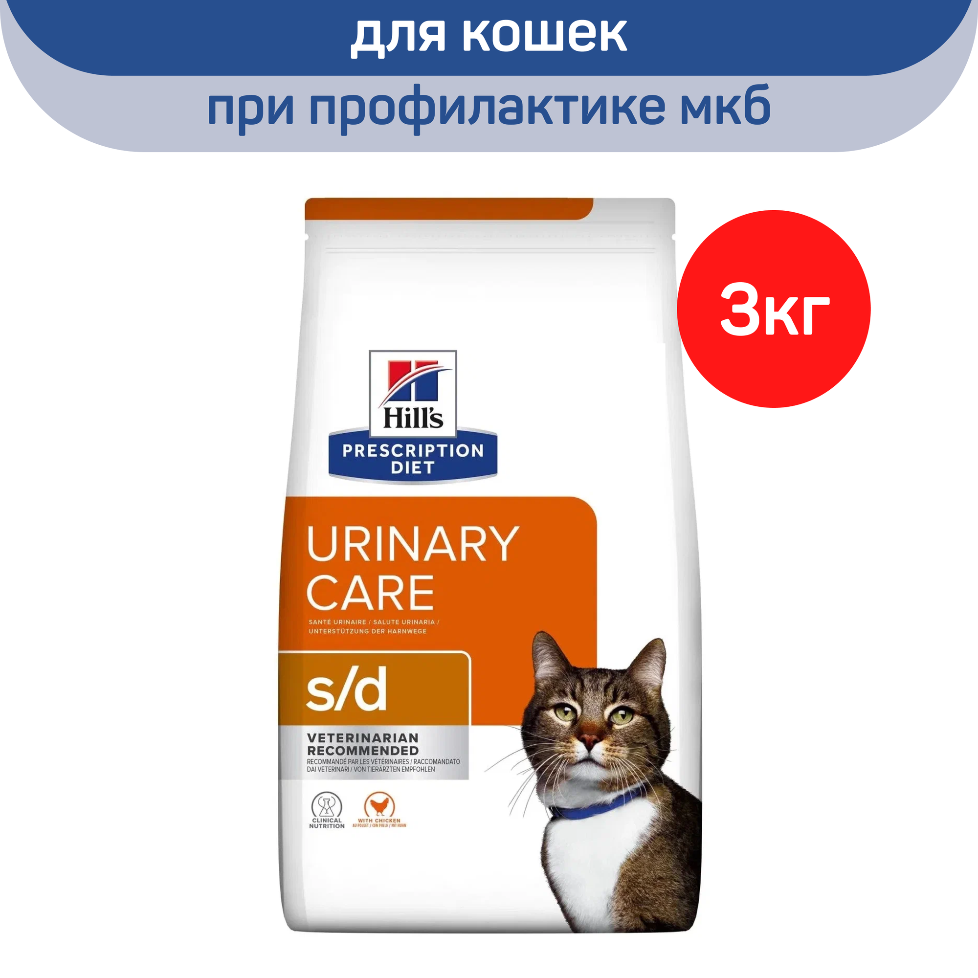 Сухой диетический корм для кошек Hill's Prescription Diet s/d Urinary Care при профилактике мочекаменной болезни (мкб), с курицей, 3 кг