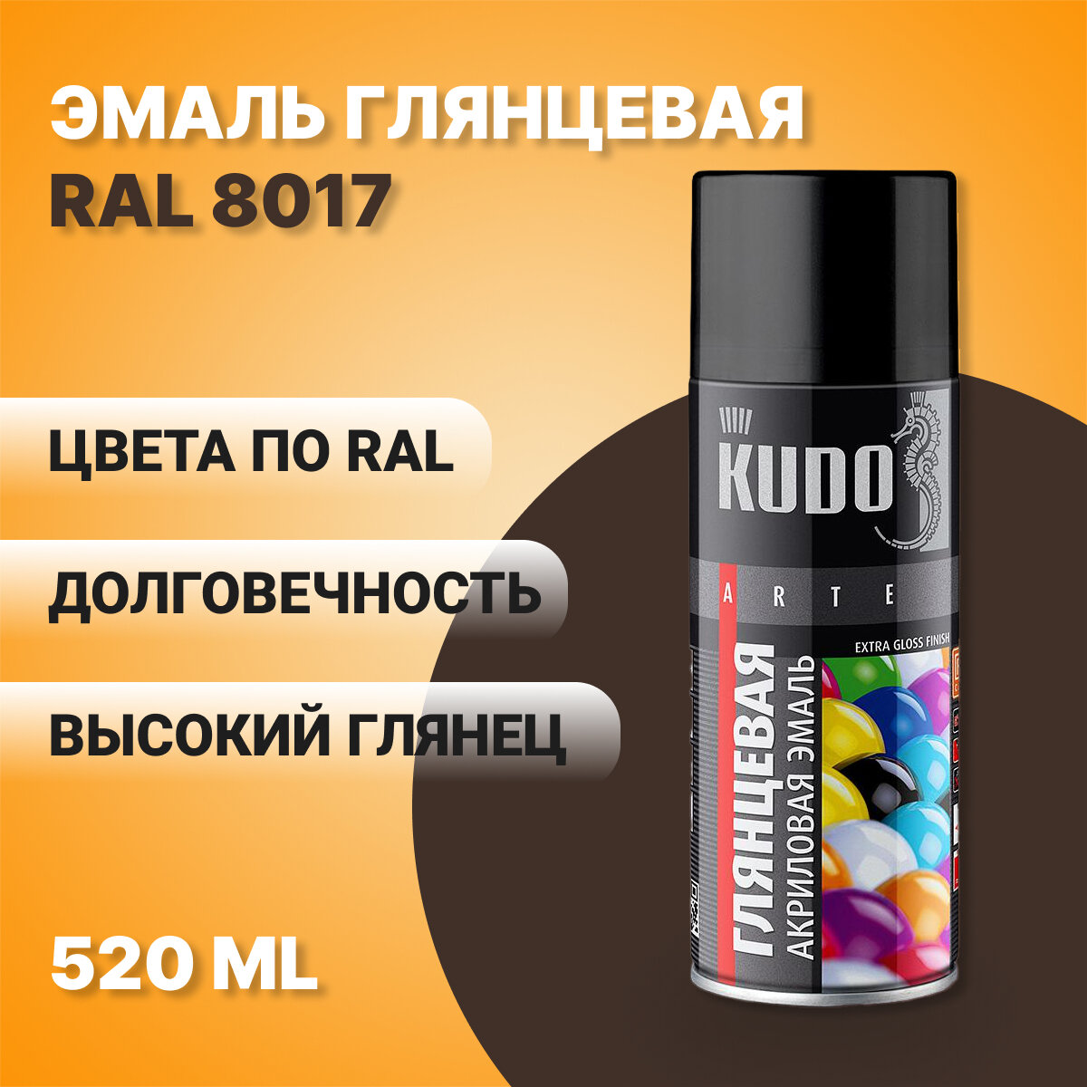 Эмаль аэрозольная Kudo Arte коричневая глянцевая RAL 8017 520 мл