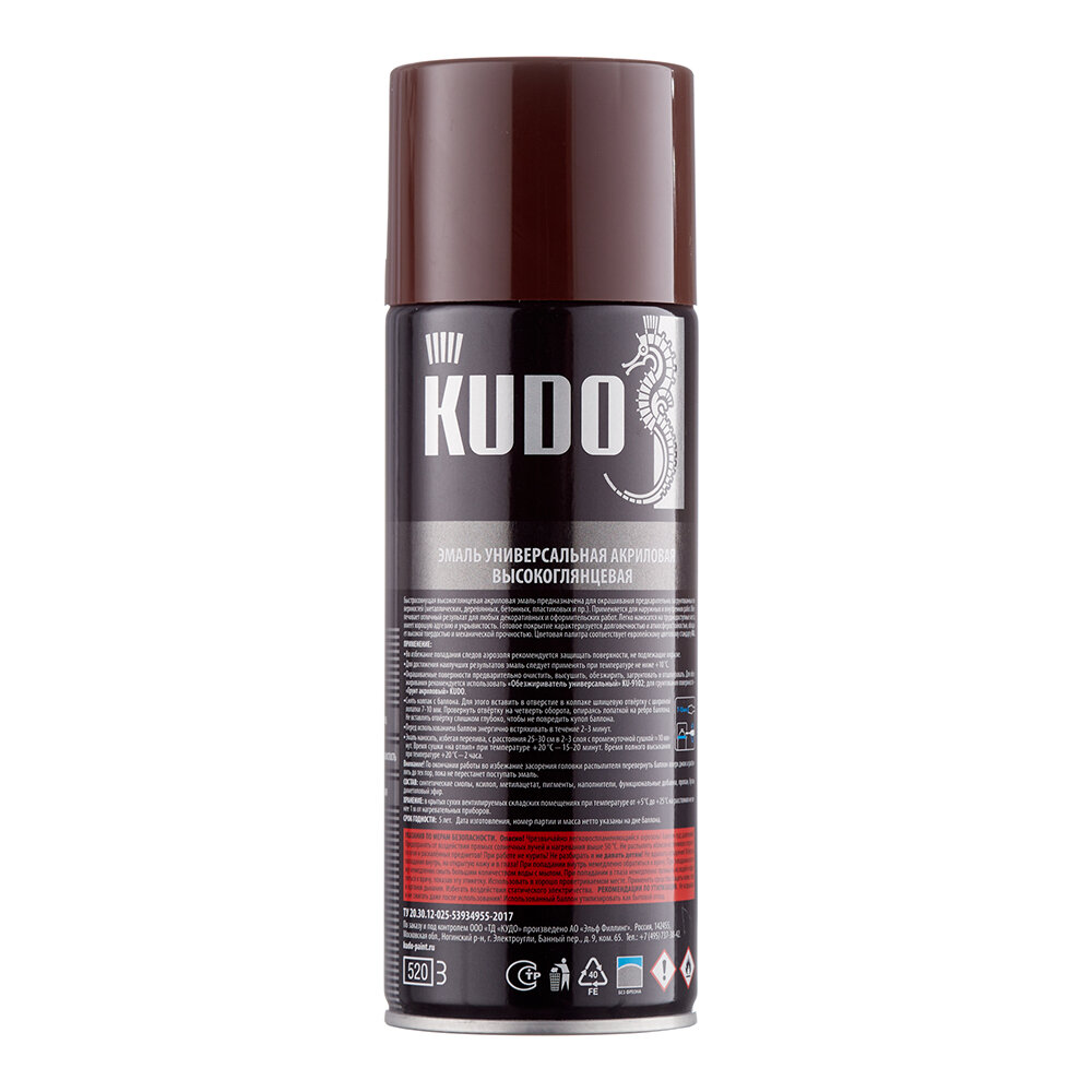 Аэрозольная акриловая краска Kudo KU-A8017, глянцевая, 520 мл, коричневая