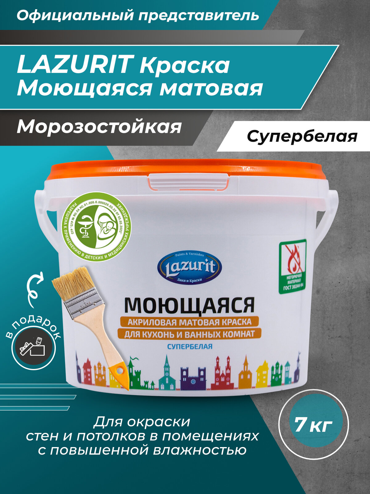LAZURIT Моющаяся матовая краска для кухонь и ванн 7 кг