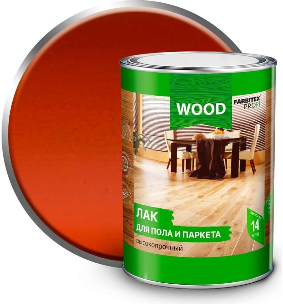 Лак для пола и паркета высокопрочный FARBITEX PROFI WOOD (Артикул: 4300009375; Фасовка = 0,8 л; Цвет = Красное дерево)