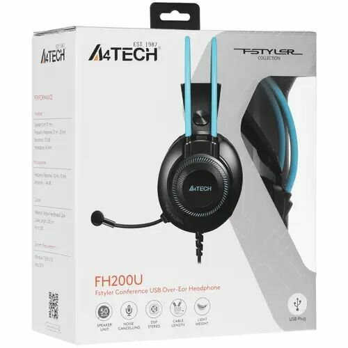 Гарнитура A4Tech Fstyler (FH200U BLUE) серый/синий 2м накладные USB, 1 шт.