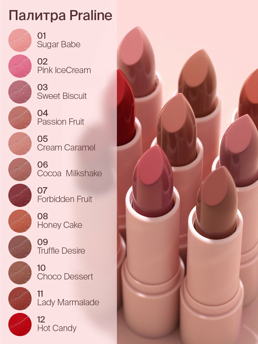 Divage / Диваж Губная помада Praline тон 01 Sugar Babe, кремовая текстура 3г / декоративная косметика