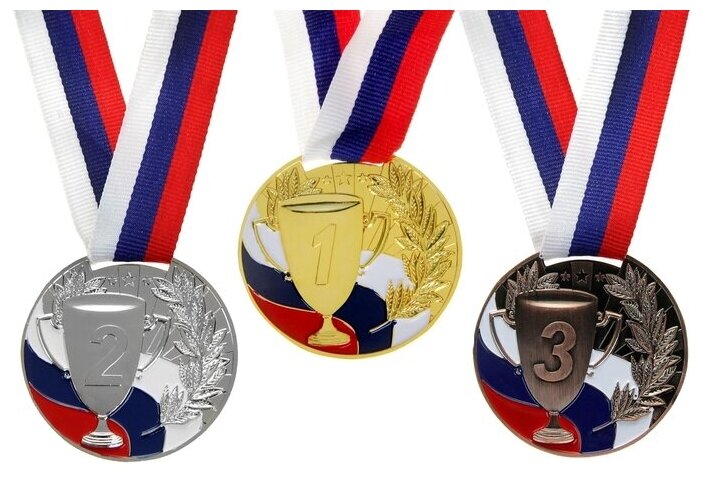 Медаль призовая, триколор, 1 место, золото, d=5 см интересное: