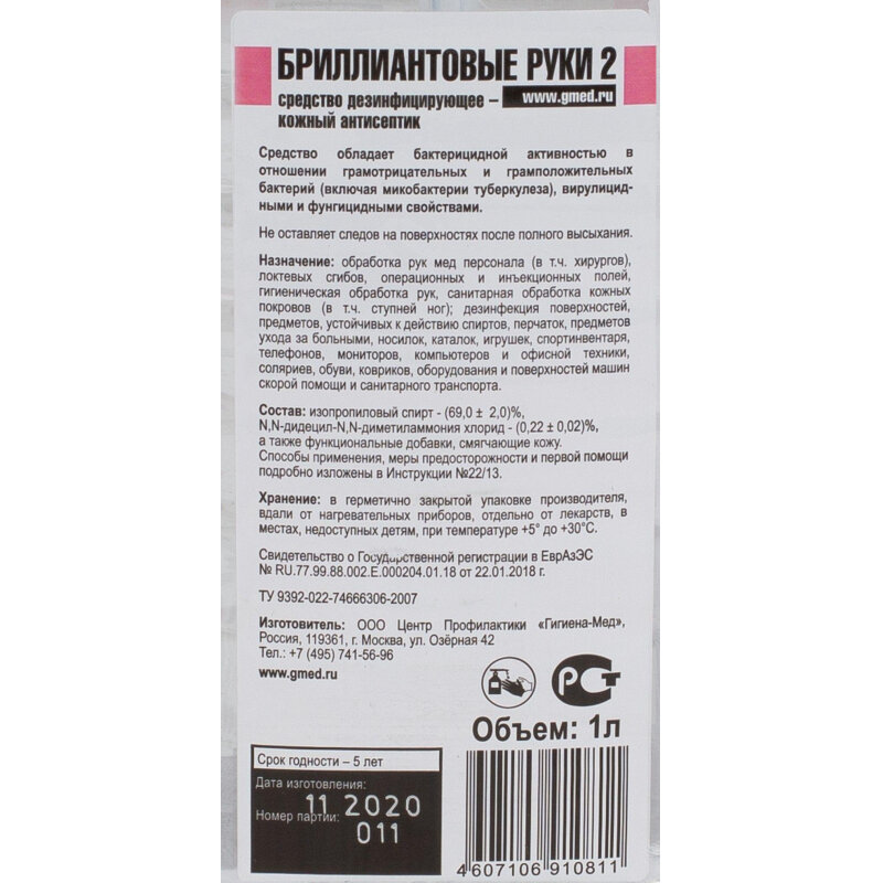 СохранитьБриллиантовые руки 2 кожный антисептик 1 л интересное: