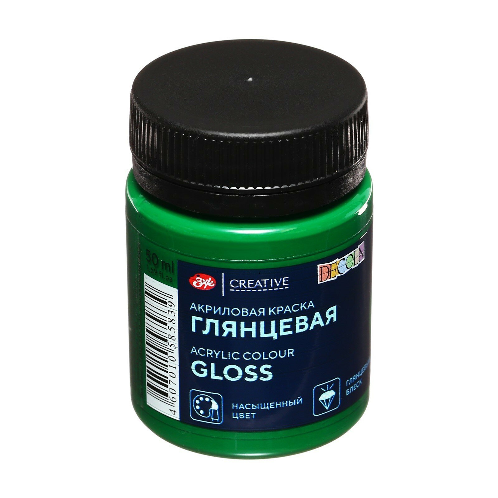 Краска акриловая глянцевая 50 мл, ЗХК Decola, изумрудная, 2928720