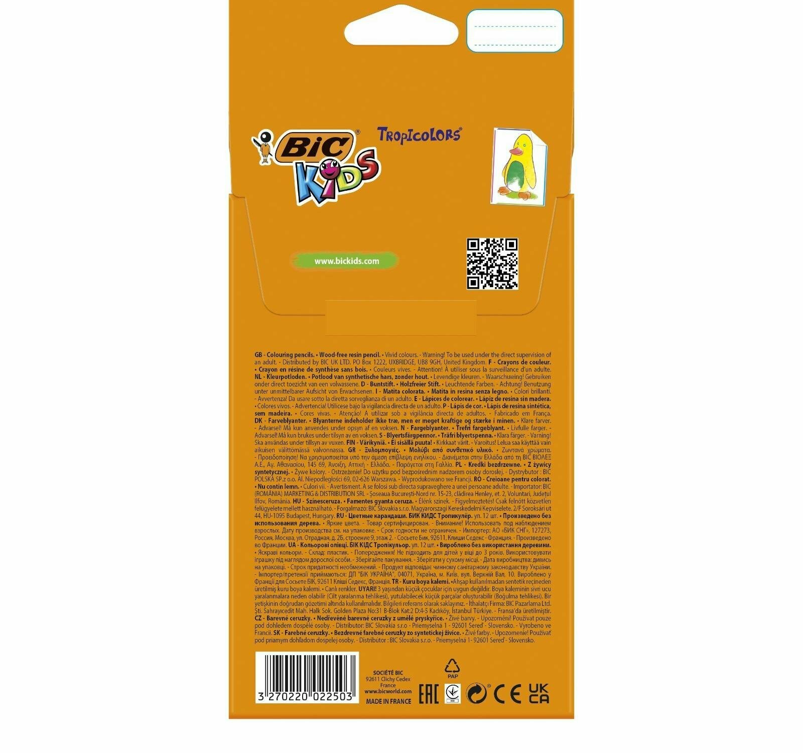 Купить Карандаши 12 цветов, детские, шестигранные, BIC Kids Tropicolors, пластиковые, ударопрочный грифель 3.2мм, картонная упаковка