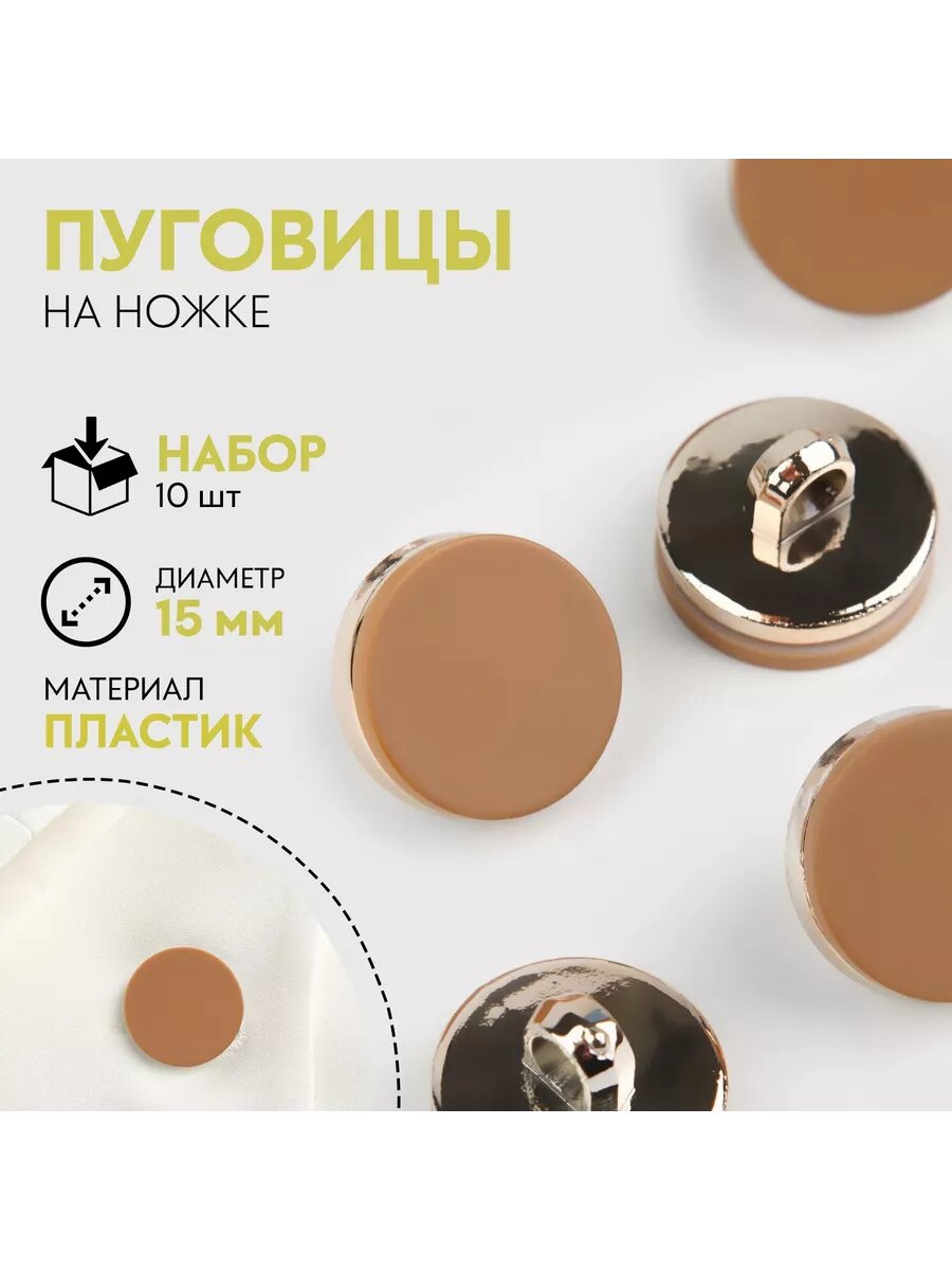 Купить Набор пластиковых пуговиц на ножке, d = 15 мм, 10 шт, матовые, цвет коричневый./В упаковке шт: 1