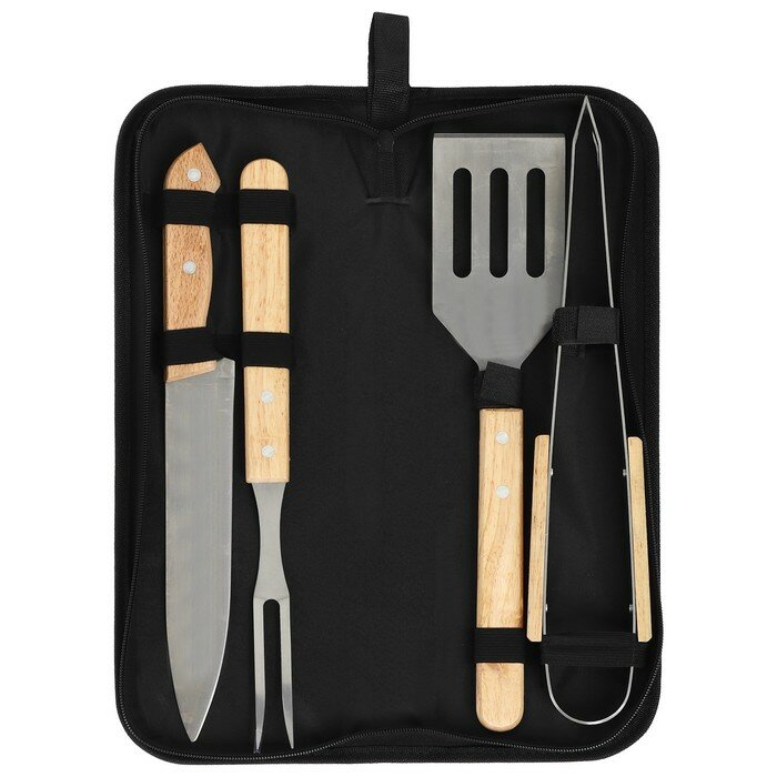 Купить Maclay Набор для барбекю (нож,вилка,щипцы,лопатка) 33 см