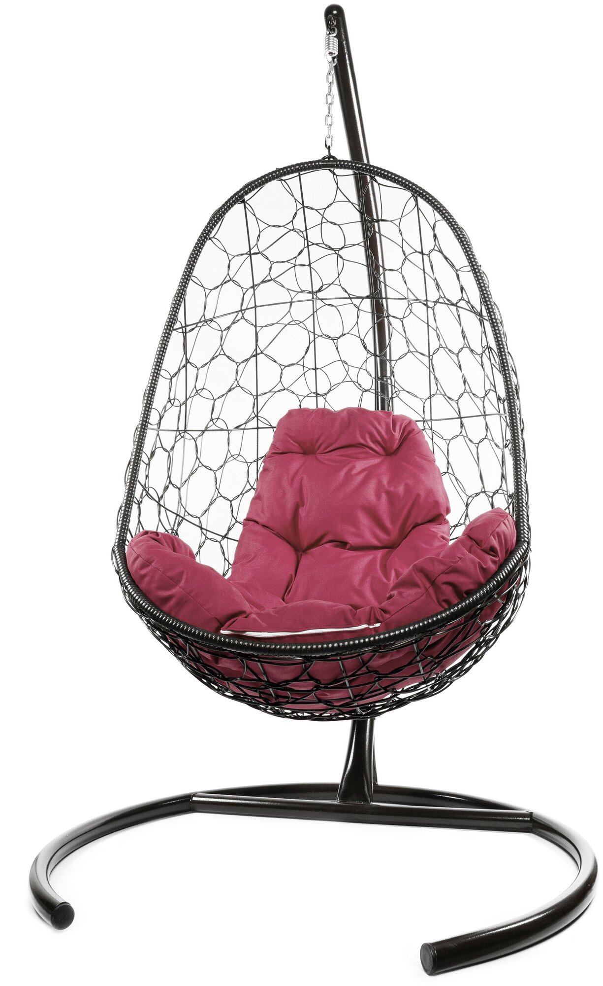 Подвесное кресло овал с ротангом чёрное, бордовая подушка