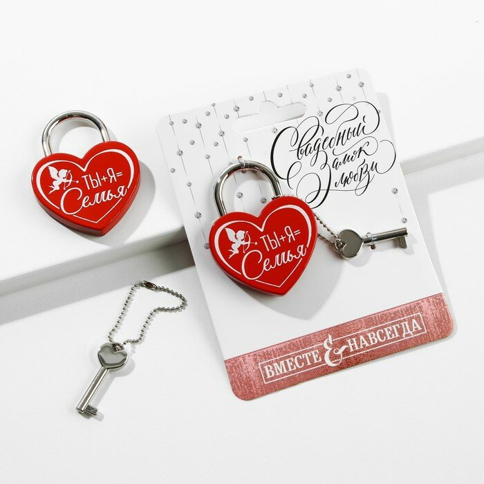 Замок с ключом Ты+Я=Семья, ангел, красный , 4,5 х 6 х 0,5 см интересное: