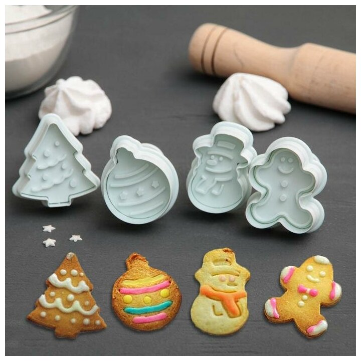 Доляна Набор плунжеров кондитерских Доляна «Новый год», 4 шт интересное:
