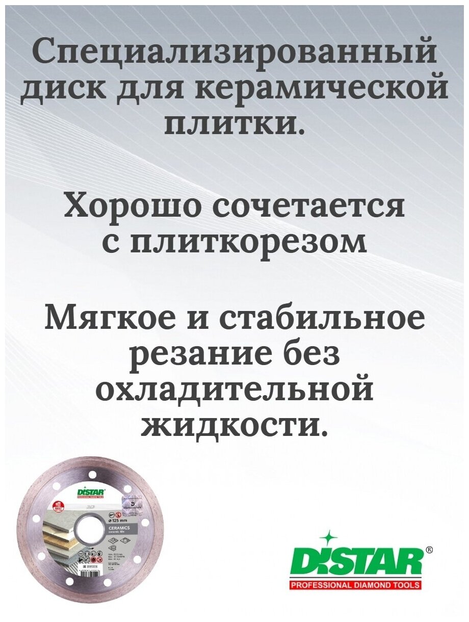 Диск алмазный 125x1,5x8x22,23мм Ceramics Bestselle Distar 11315095010