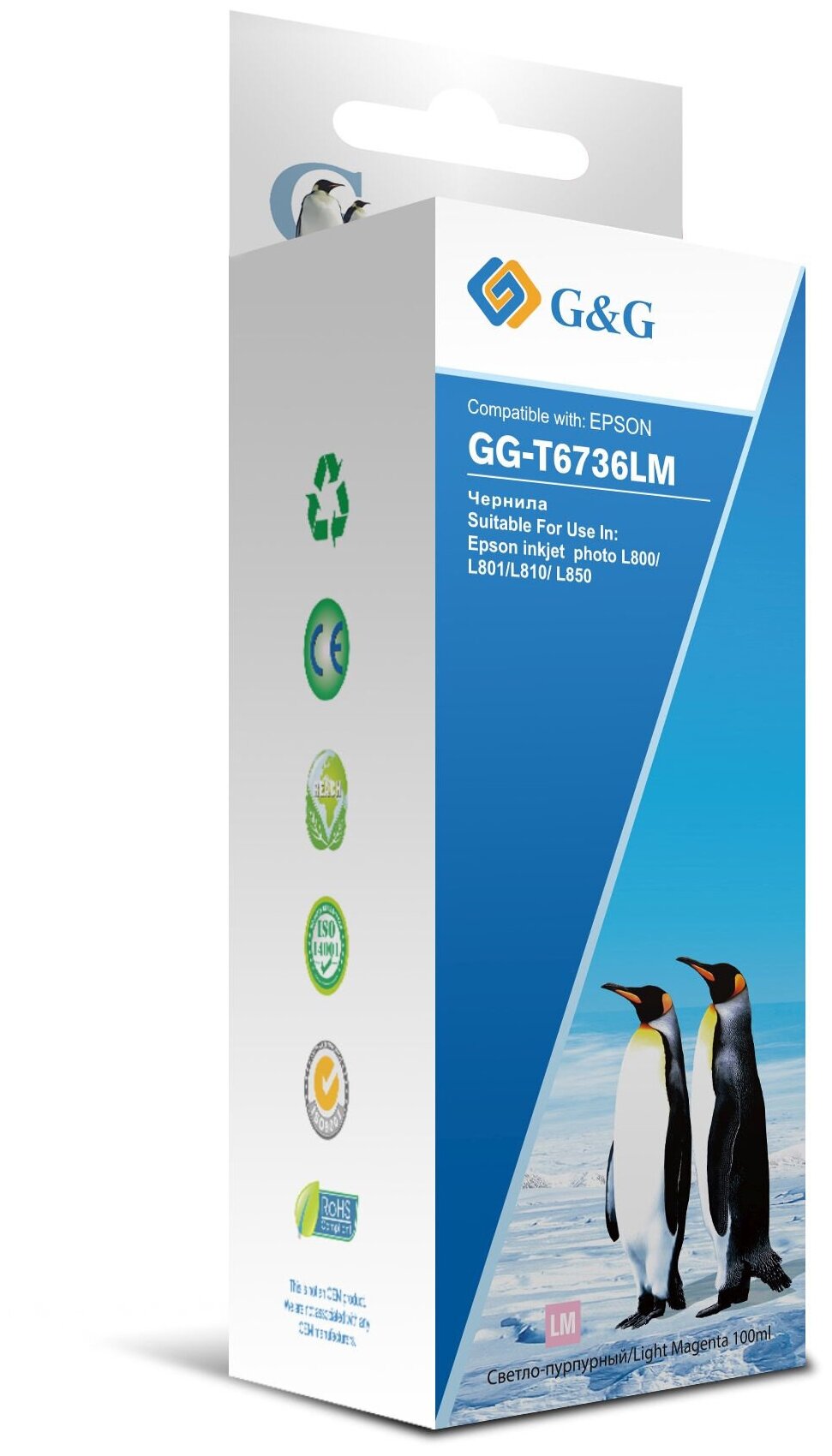Чернила G&G GG-T6736LM, для Epson, 100мл, светло-пурпурный