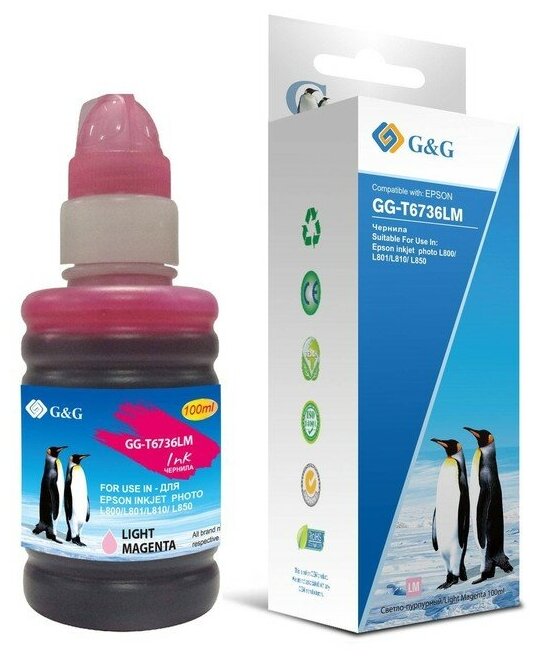 Купить Чернила G&G GG-T6736LM (GG-T6736LM), светло-пурпурный, совместимые для Epson L800, L805, L810, L850