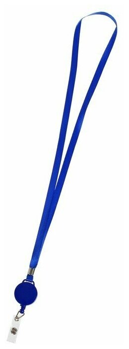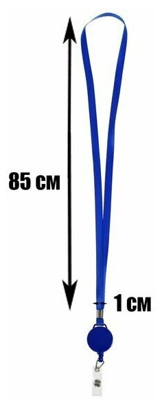 Лента для бейджа, 10 мм х 85 см, с держателем - рулеткой 40 см., и петлей, на кнопке, синий интересное: