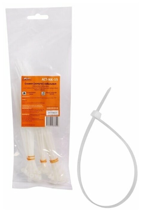 Стяжки (хомуты) кабельные, пласт. бел., набор 60шт.(2,5*100мм-20шт/3,6*150мм-20шт/3,6*200мм-20шт) (ACT-NK-15)