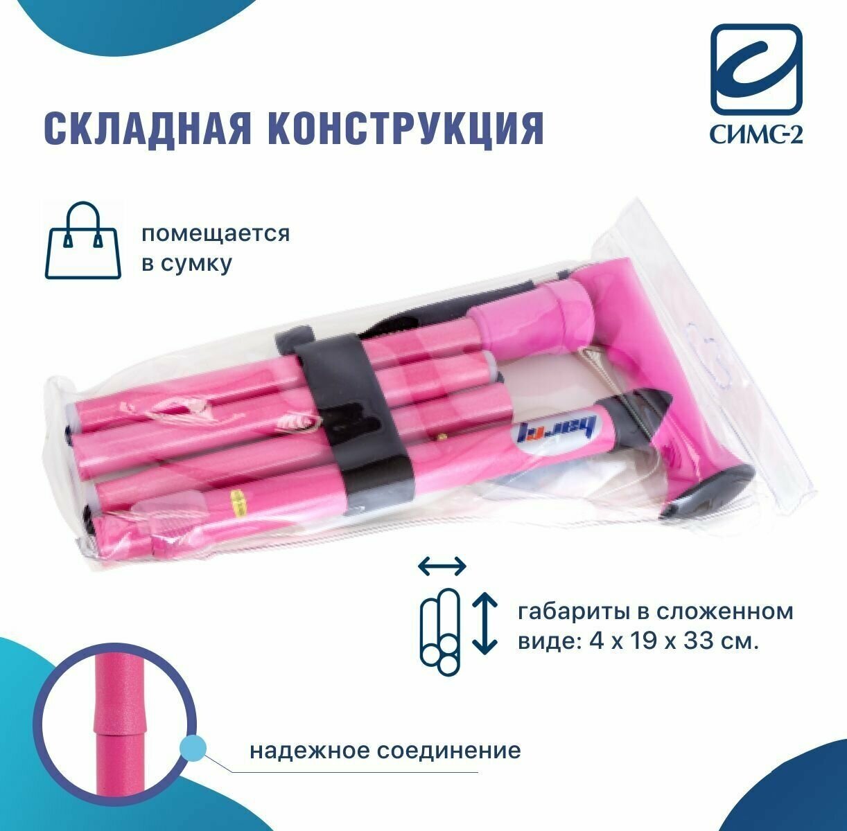 Трость складная опорная c регулировкой высоты для ходьбы для взрослых и пожилых цвет светло-розовый 10113