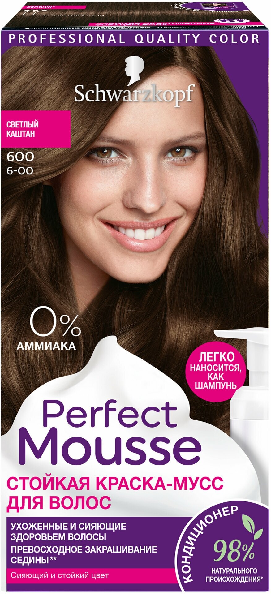 Perfect Mousse стойкая краска перфект мусс для волос, 600, Светлый каштан, 35 мл