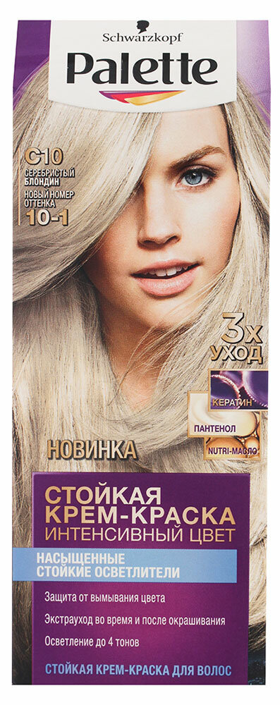 Ниже Вы можете прочитать отзывы на Palette Интенсивный цвет Стойкая крем-краска для волос, С10 10-1 Серебряный блонд, ознакомится с подробными характеристиками, посмотреть интересные обзоры и фотографии на Palette Интенсивный цвет Стойкая крем-краска для волос, С10 10-1 Серебряный блонд.