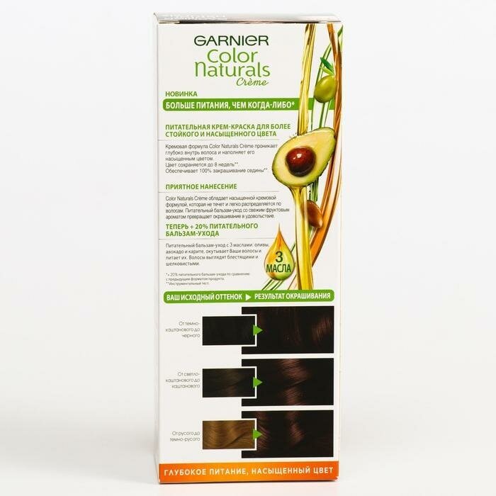 GARNIER Color Naturals стойкая питательная крем-краска для волос, 6.25 шоколад, 110 мл.