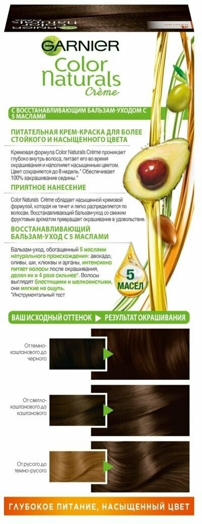 Крем-краска для волос Garnier Color Naturals с 3 маслами, тон 4.12, Холодный Шатен