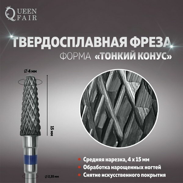 Фреза твердосплавная для маникюра "Тонкий конус", средняя нарезка, 4 x 15 мм, в пластиковом футляре интересное:
