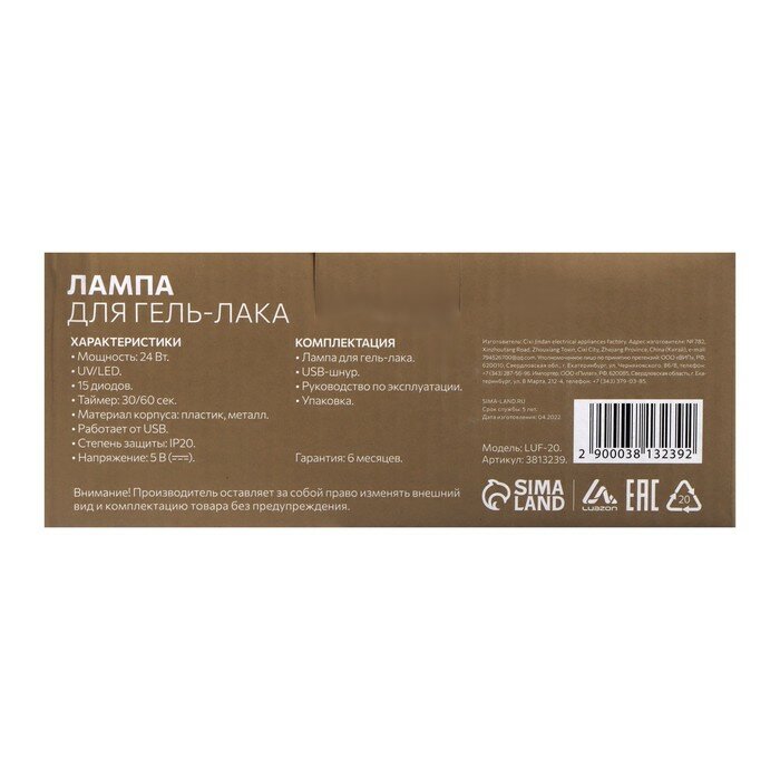 Лампа для гель-лака LuazON LUF-20, LED, 15 диодов, 24 Вт, таймер 2 режима, USB, белая Luazon Home 38 .