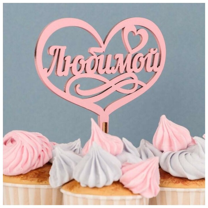 Купить Топпер деревянный "Любимой" розовый 13х10 см 6029936