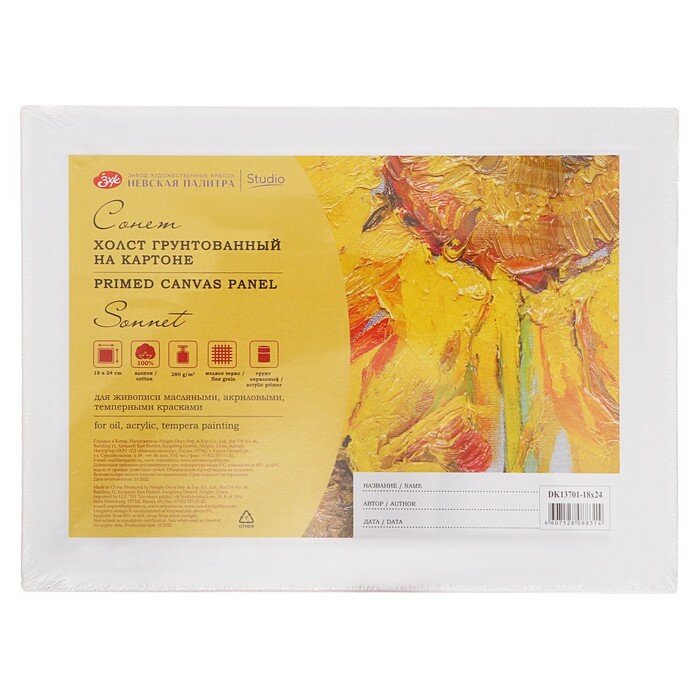 Завод художественных красок «Невская палитра» Холст на картоне 18 х 24 см, хлопок 100%, 3.0 мм, акриловый грунт, мелкозернистый, ЗХК "Сонет"