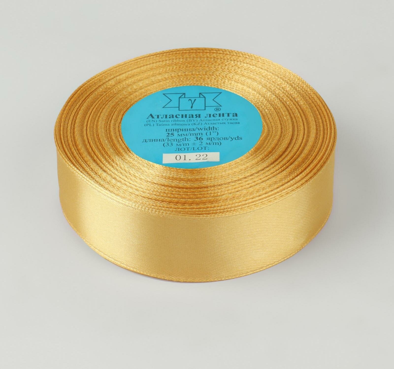 Лента атласная, 25 мм × 33 ± 2 м, цвет горчичный №148 (1 шт.)