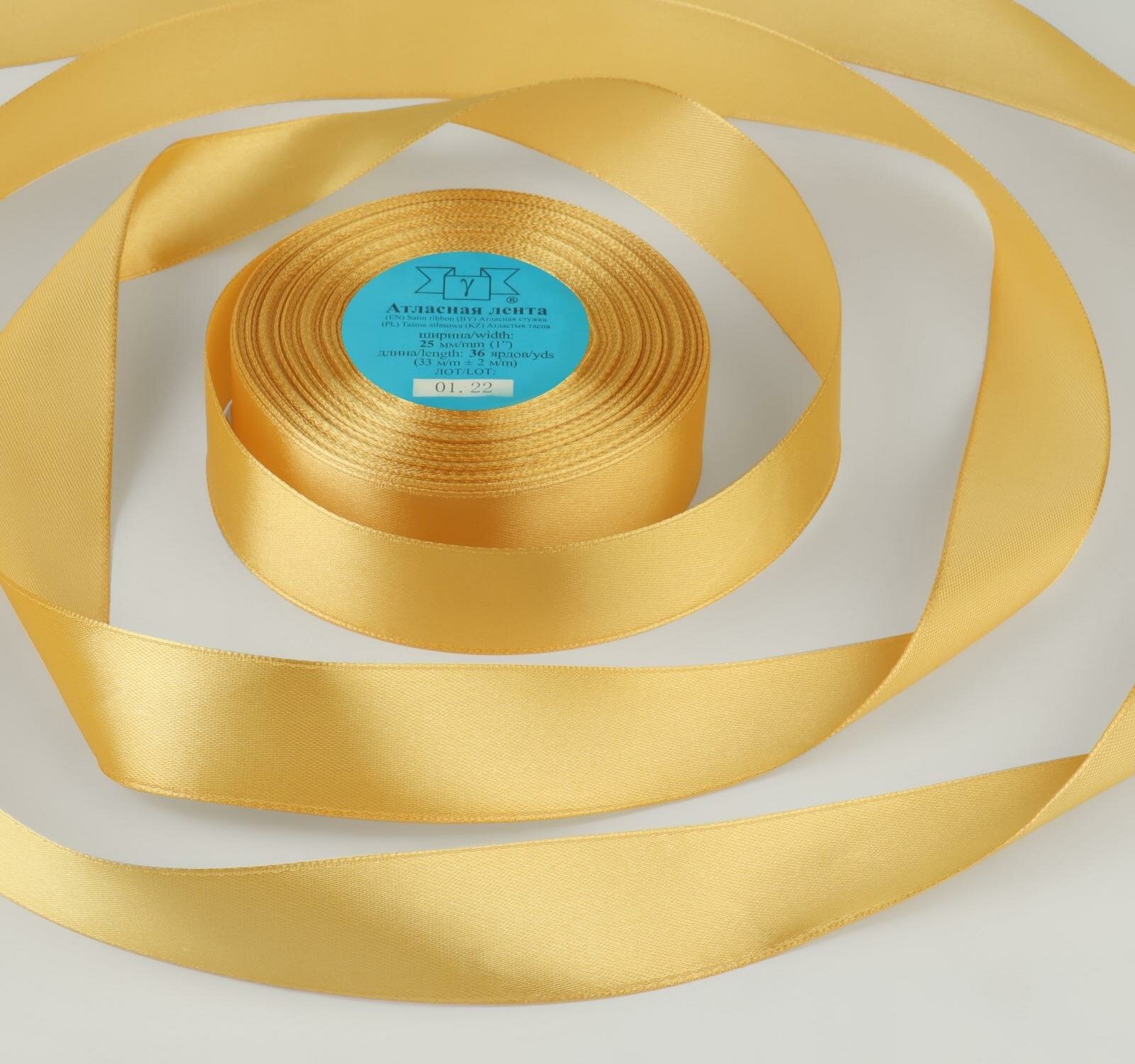 Лента атласная, 25 мм × 33 ± 2 м, цвет горчичный №148 интересное: