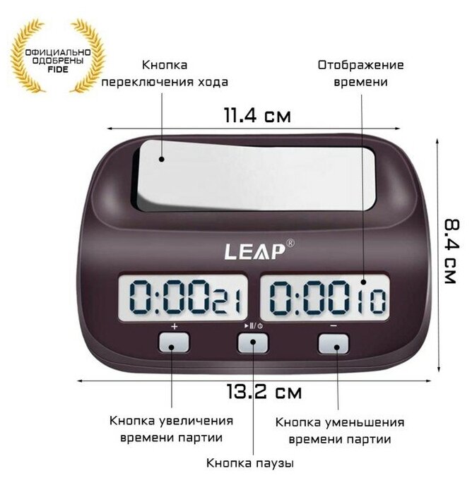 Шахматные часы, электронные, LEAP FIDE, PQ9907S, 13.2 х 3.5 см, 1 АА 1128596 интересное:
