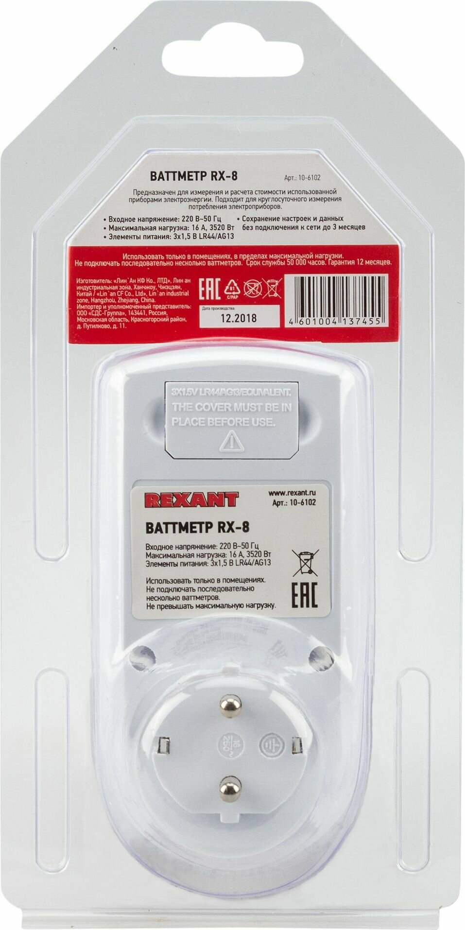 Ваттметр RX-8 Rexant 10-6102 (20 шт.)