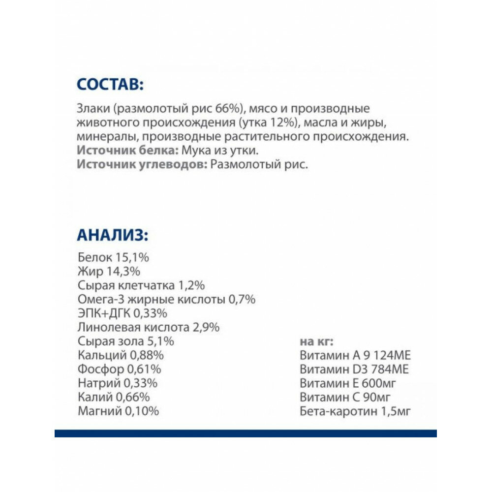 | Плюсы: | Корм гипоаллергенный |
