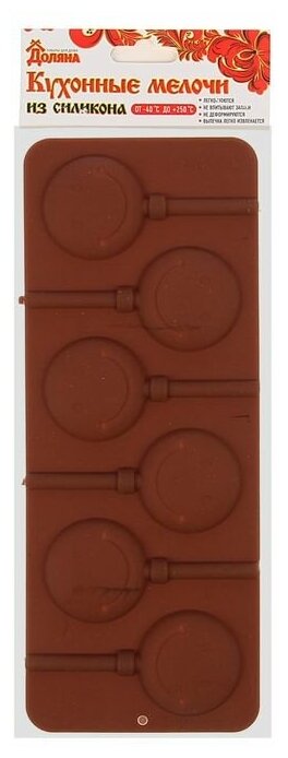 Форма силиконовая для леденцов Доляна «Смайл», 24×9,5 см, 6 ячеек (d=4 см), с палочками, цвет микс