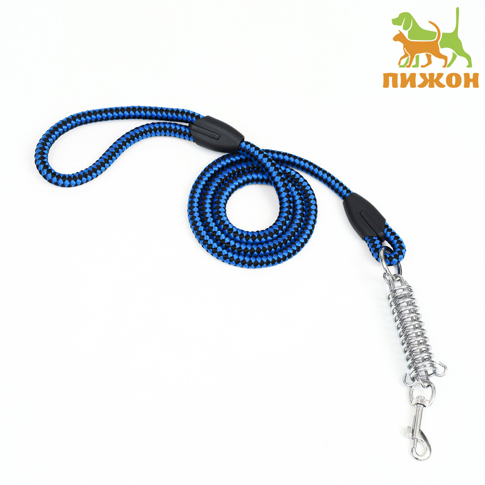 Пижон Поводок усиленный с амортизатором от рывка, 120 х 1,2 см, чёрно-синий