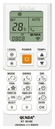 Пульт кондиционера Qunda KT-9018E универсал 4000 в 1 подходит на все модели.