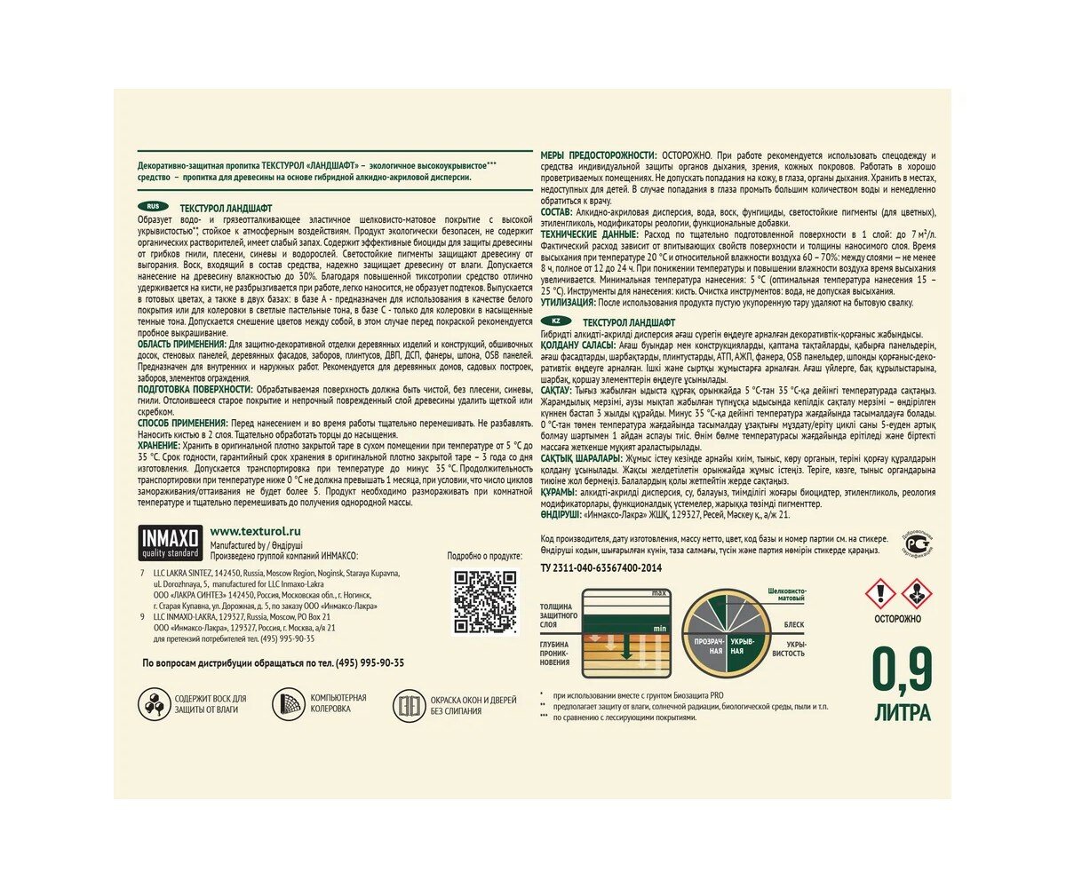 Текстурол Ландшафт деревозащитное средство на вод. основе Сосна 0,9л
