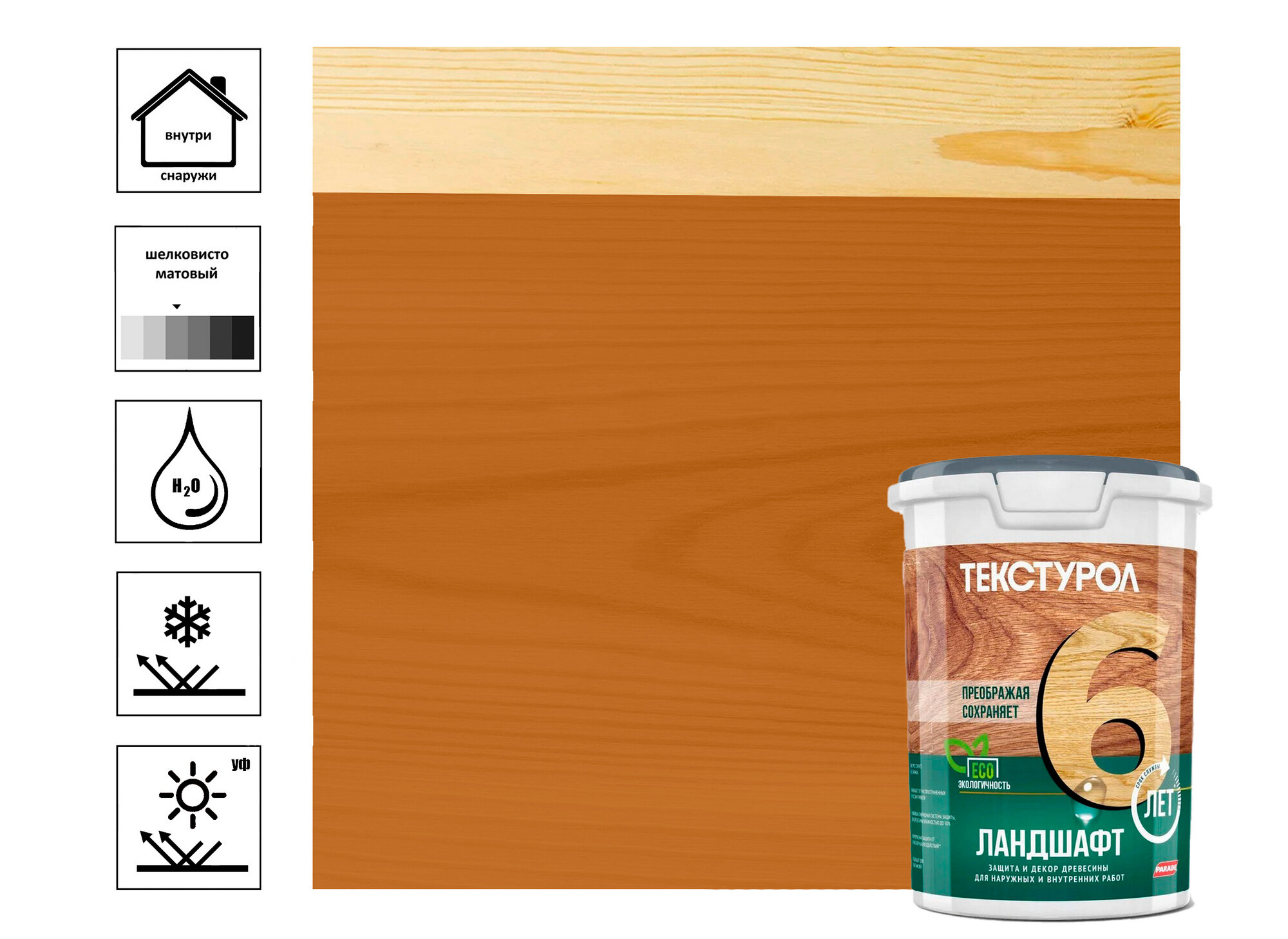 Защитное покрытие для древесины Ландшафт Текстурол 9 л сосна шелковисто-глянцевая