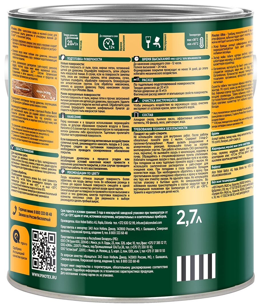 Ниже Вы можете прочитать отзывы на PINOTEX ULTRA лазурь защитная влагостойкая для защиты древесины до 10 лет, рябина (2,7л), ознакомится с подробными характеристиками, посмотреть интересные обзоры и фотографии на PINOTEX ULTRA лазурь защитная влагостойкая для защиты древесины до 10 лет, рябина (2,7л).