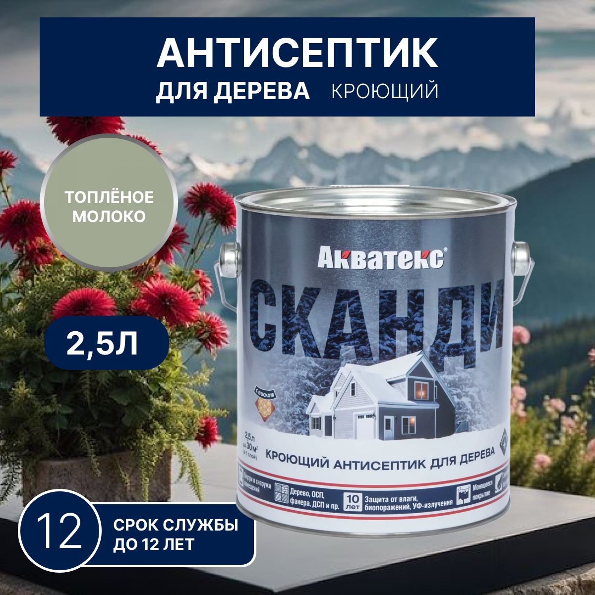Антисептик кроющий для дерева Акватекс сканди 2,5 л Топленое молоко
