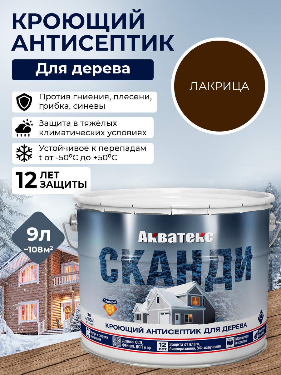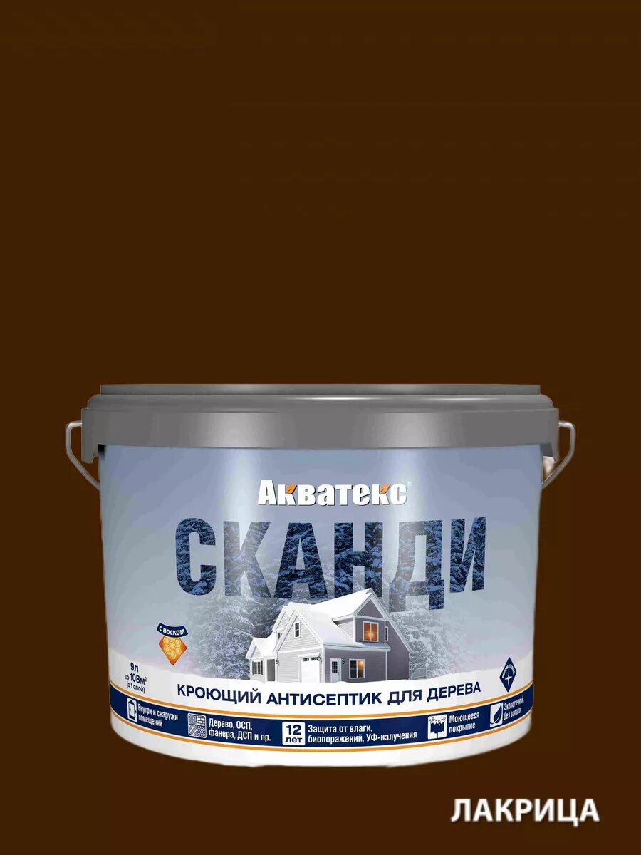 Купить Акватекс Сканди антисептик для древесины кроющий акриловый полуматовый, лакрица (9 л)