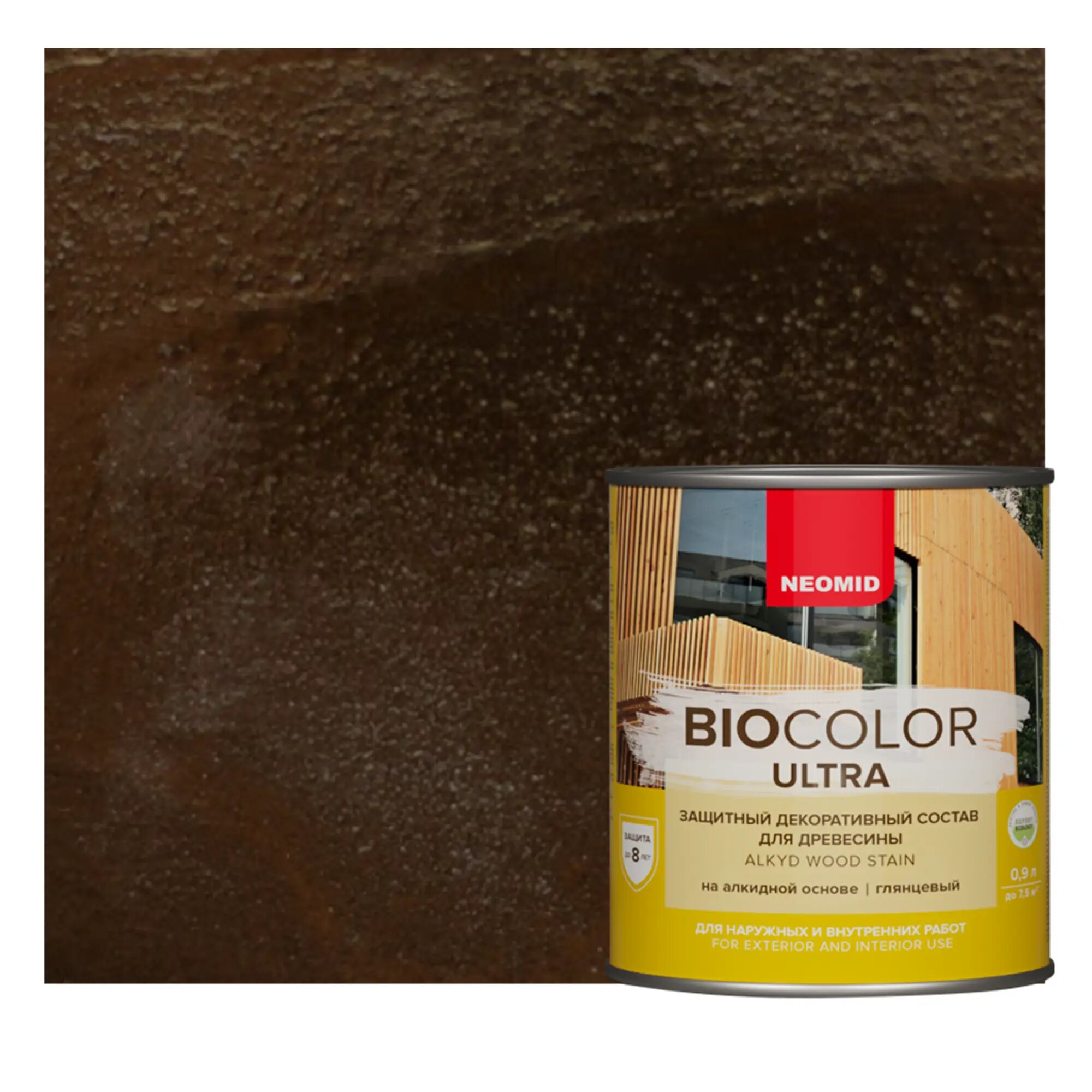 Декоративная Пропитка для Древесины Neomid Biocolor Ultra 9л Орех Полуглянцевая с Усиленной Защитой / Неомид Био Колор Ультра.