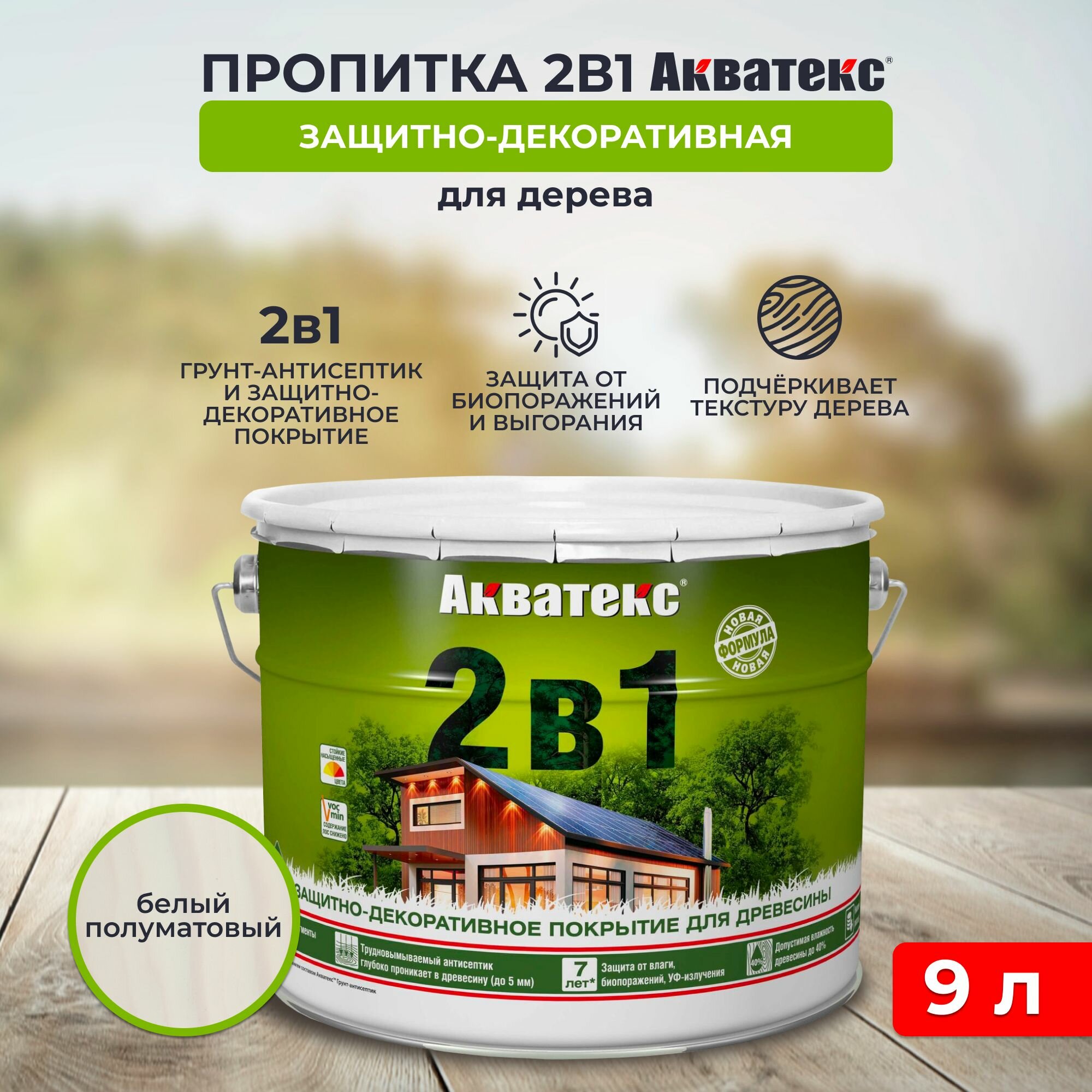 Защитно-декоративное Акватекс покрытие для древесины, пропитка по дереву, 2в1, сосна, 9л