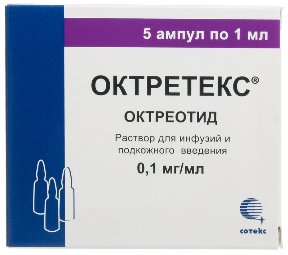 Октретекс раствор для инфузий и п/к введ. 0,1мг/мл 1мл 5шт интересное: