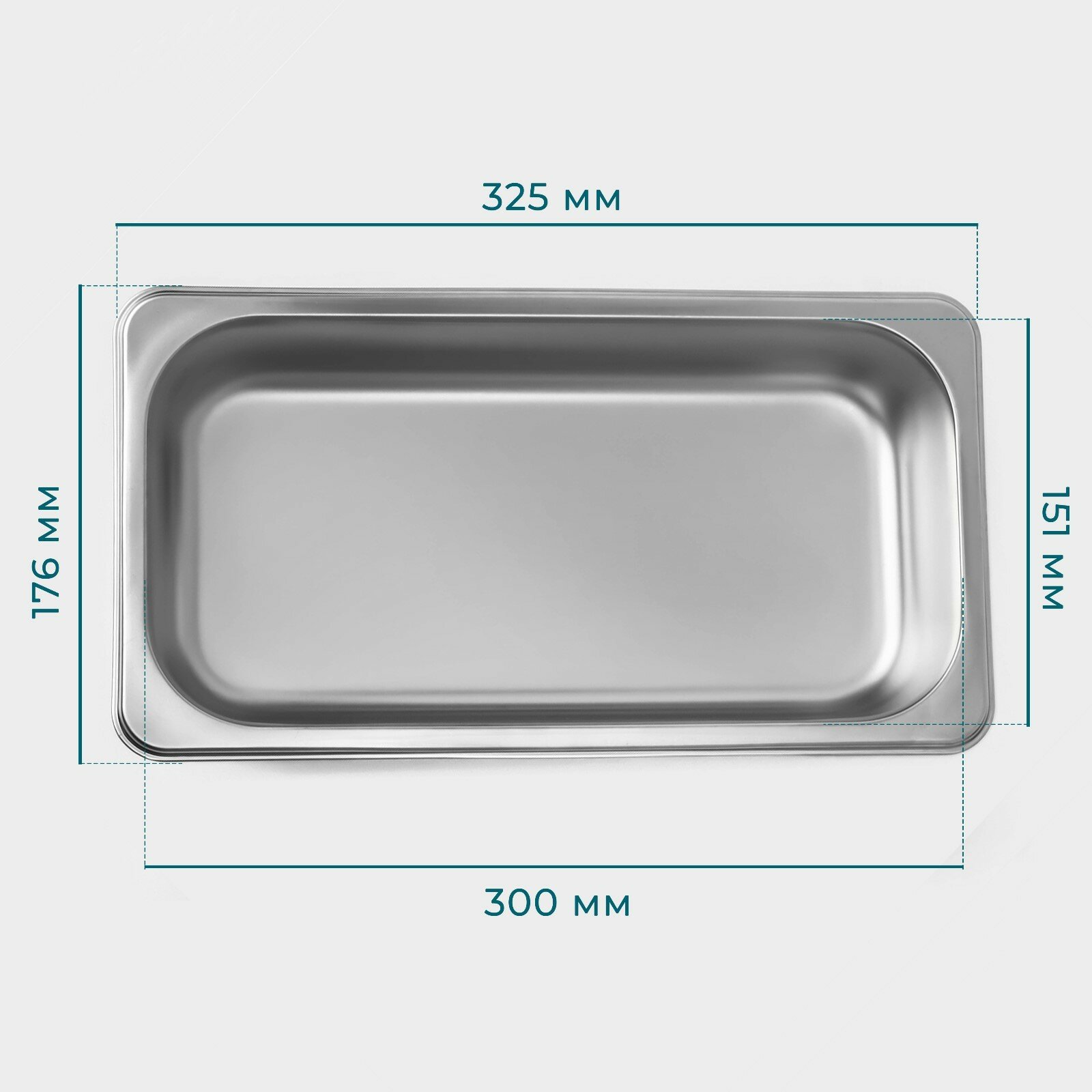 Купить Гастроемкость 1/3 из нержавеющей стали, 65 мм, 32,5×17,6×6,5 см, толщина 0,8 мм